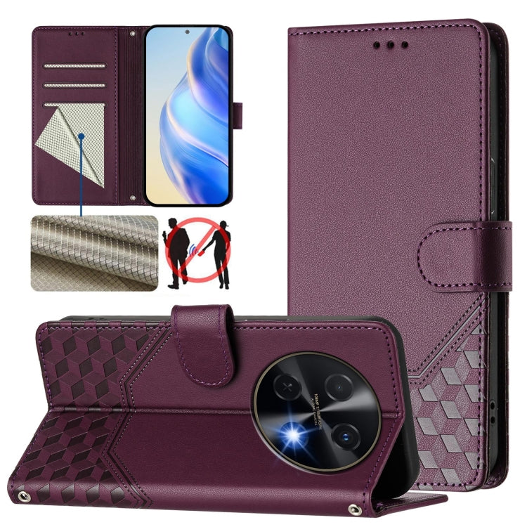 Funda de Cuero Rfid con Relieve en Panal para Huawei Nova 12I 4G (Violeta)
