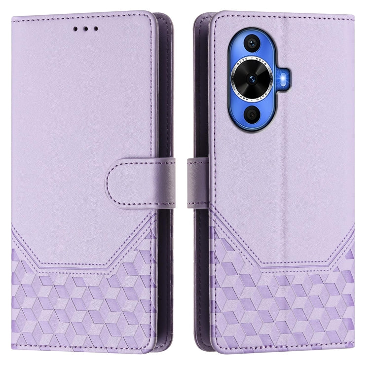 Funda de Cuero Rfid con Relieve en Panal para Huawei Nova 12S 4G (Morado Claro)