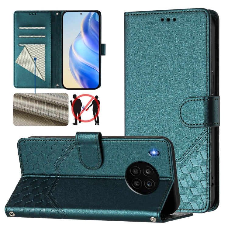 Funda de Cuero Rfid con Relieve en Panal para Huawei Nova 8I (Verde Pavo Real)
