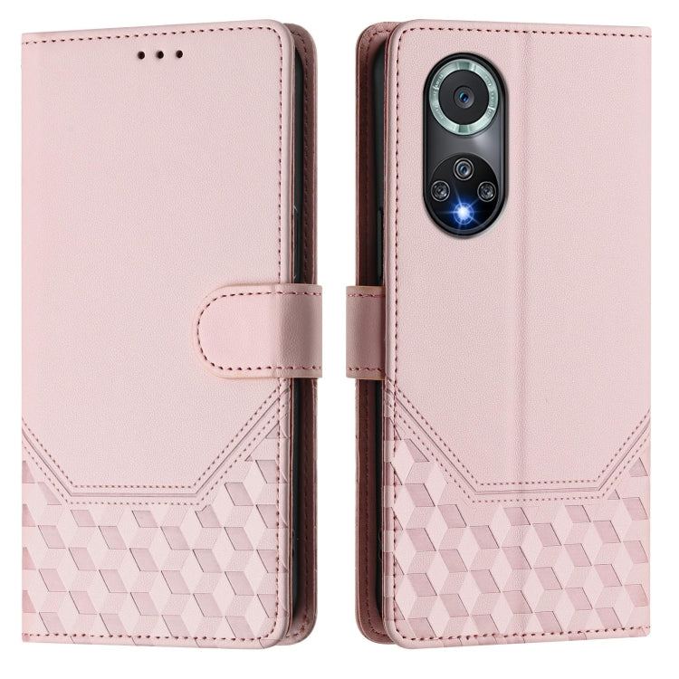 Funda de Cuero Rfid con Relieve en Panal para Huawei Nova 9 Pro Honor 50 Pro (Rosa)