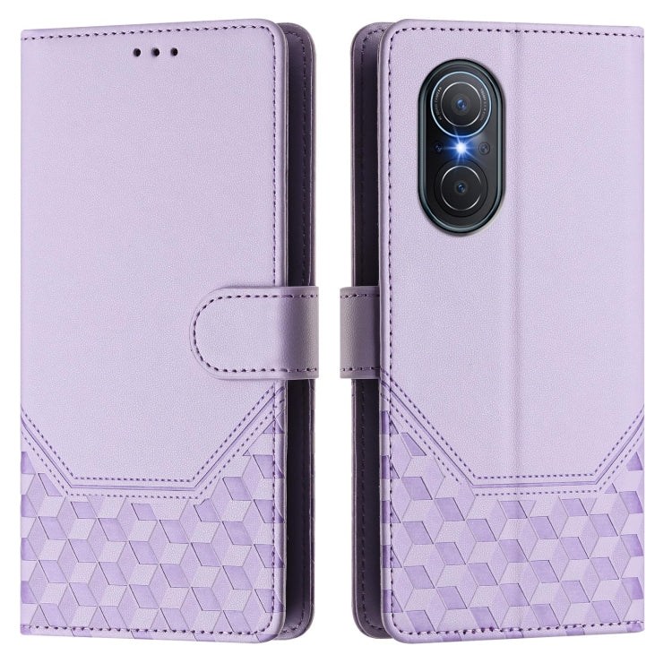 Funda de Cuero Rfid con Relieve en Panal para Huawei Nova 9 Se y Honor 50 Se (Morado Claro)