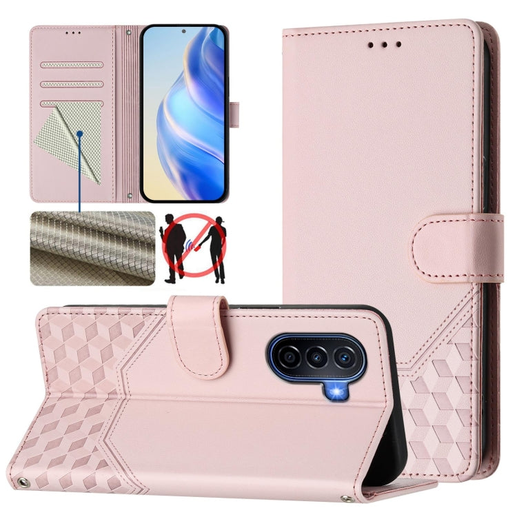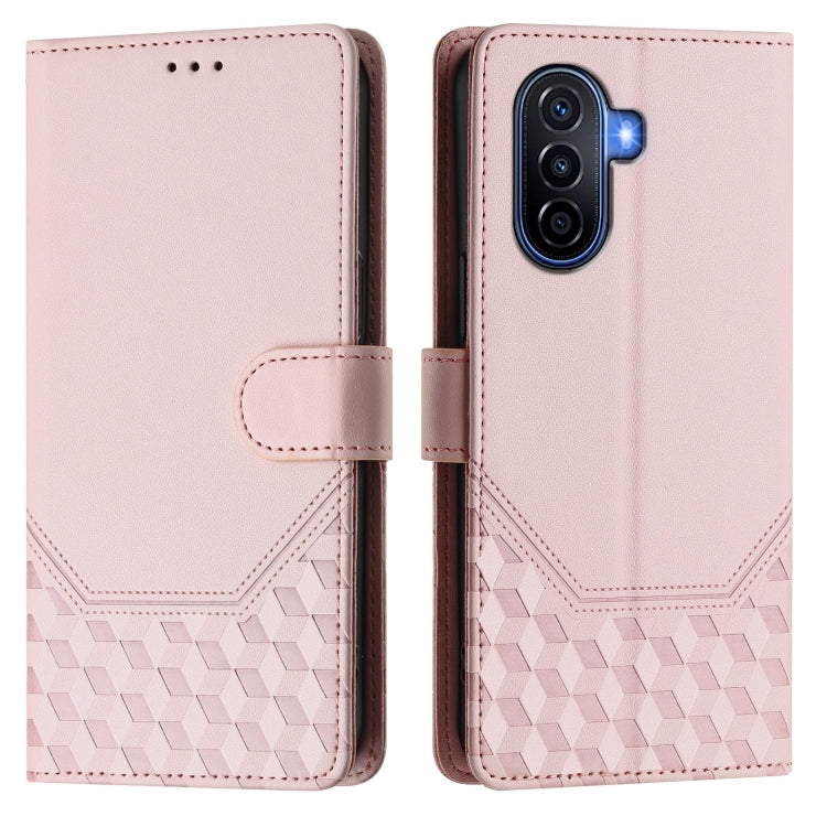 Funda de Cuero Rfid con Relieve en Panal para Huawei Nova Y70 Plus (Rosa)