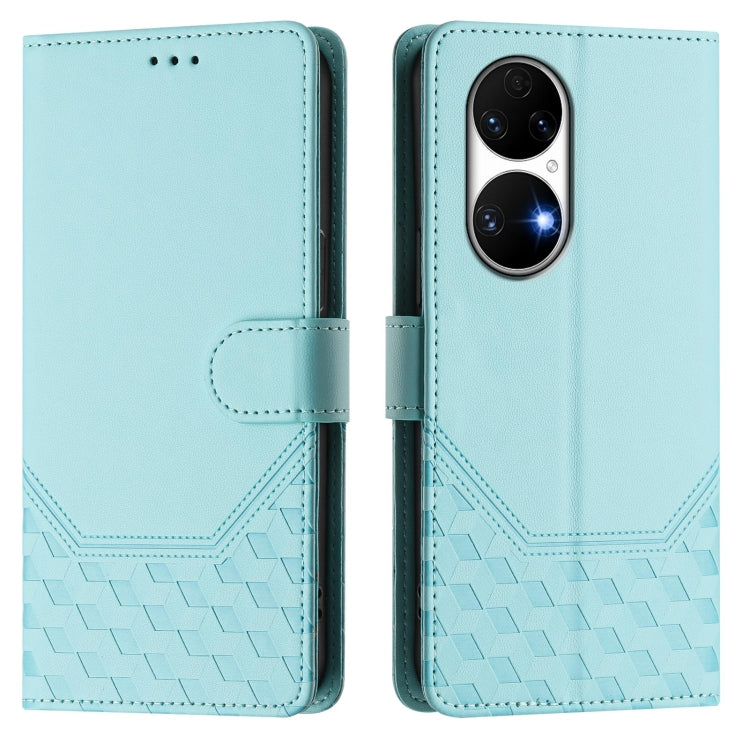 Funda de Cuero Rfid con Relieve en Panal para Huawei P50 (Verde Menta)