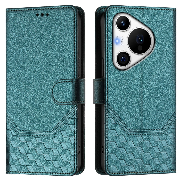 Funda de Cuero RFID con Relieve en Panal para Huawei Pura 70 Pro y Pura 70 Pro+ (Verde Pavo Real)