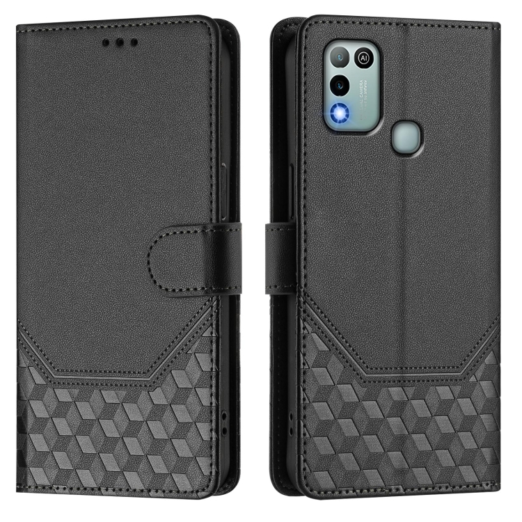 Funda de Cuero RFID con Relieve en Panal para Infinix Hot 10 Play y Hot 11 Play (Negra)