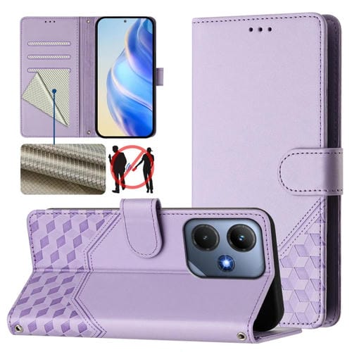 Funda de Cuero Rfid con Relieve en Panal para Infinix Hot 30I (Morado Claro)