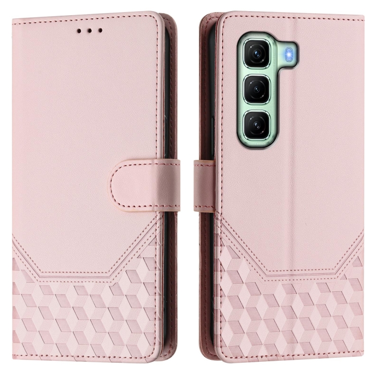 Funda de Cuero RFID con Relieve en Panal para Infinix Hot 50 5G (Rosa)