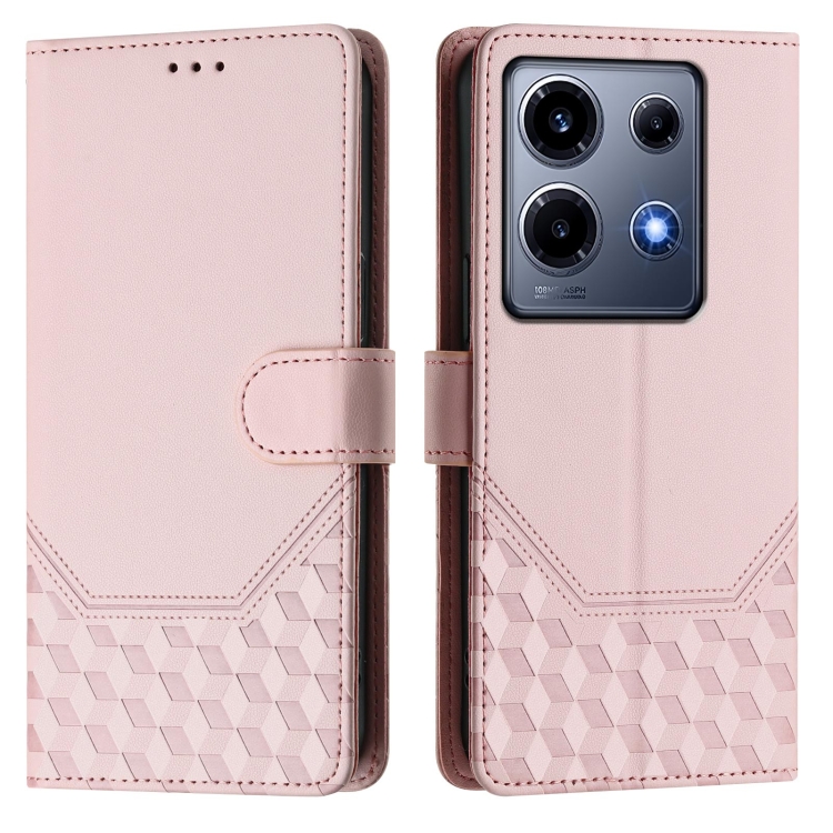 Funda de Cuero Rfid con Relieve en Panal para Infinix Note 30 Vip (Rosa)