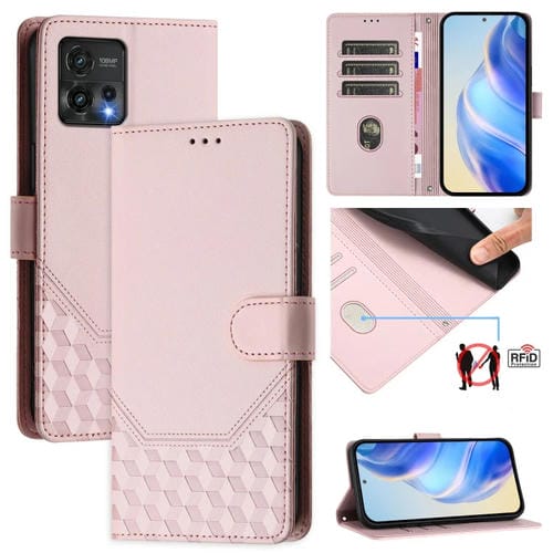 Funda de Cuero Rfid con Relieve en Panal para Motorola Moto G72 (Rosa)