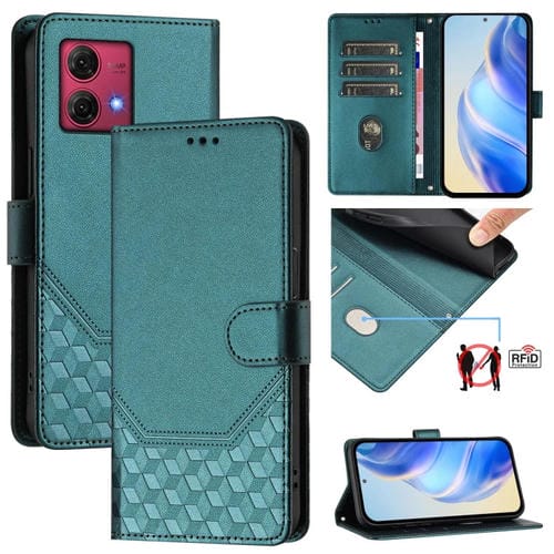 Funda de Cuero Rfid con Relieve en Panal para Motorola Moto G84 5G (Verde Pavo Real)