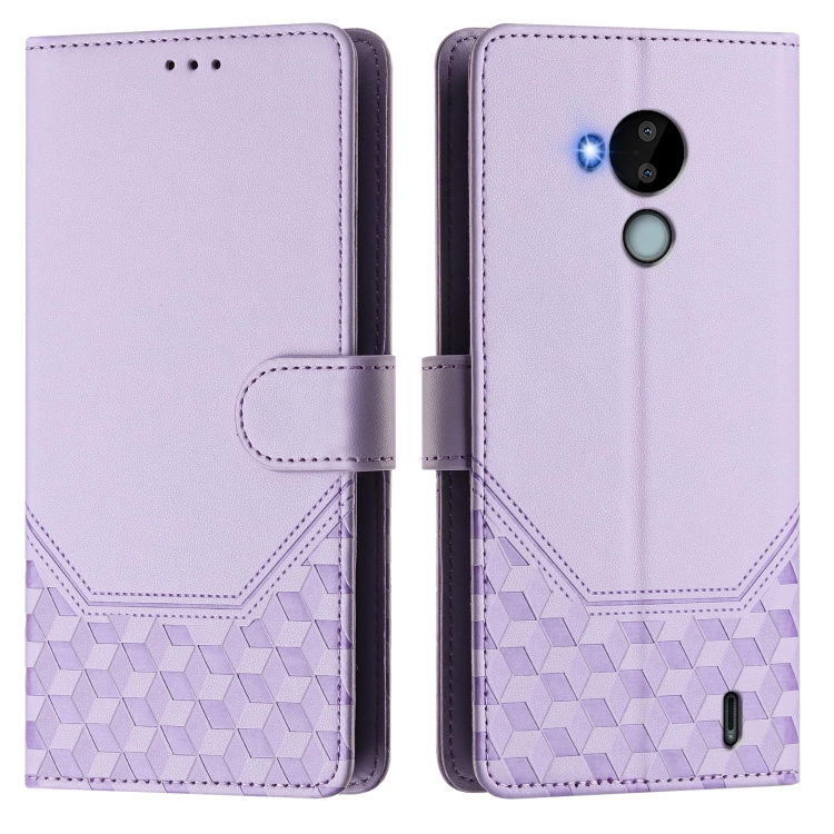 Funda de Cuero Rfid con Relieve en Panal para Nokia C30 (Morado Claro)