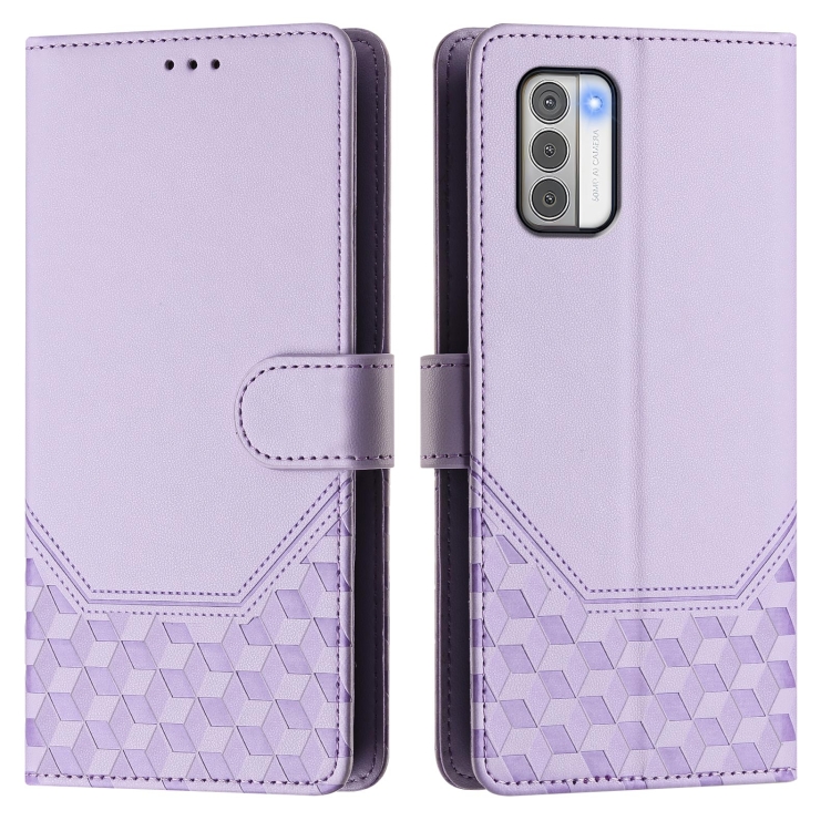 Funda de Cuero Rfid con Relieve en Panal para Nokia G42/G310 (Morado Claro)