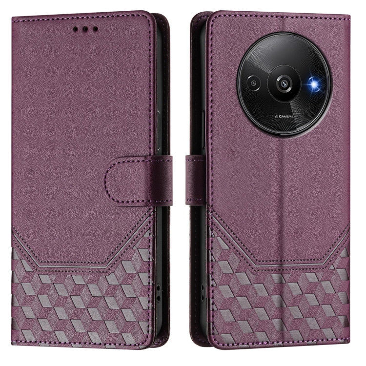 Funda de Cuero Rfid con Relieve En Panal para Redmi A3 4G Global/A3X 4G (Violeta)