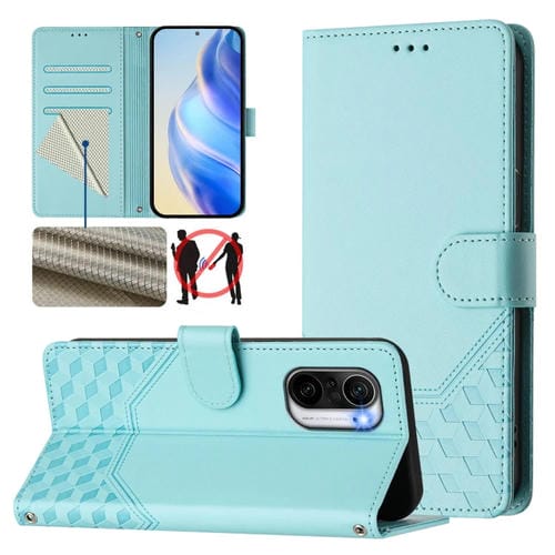 Funda de Cuero Rfid con Relieve En Panal para Redmi K40/K40 Pro (Verde Menta)