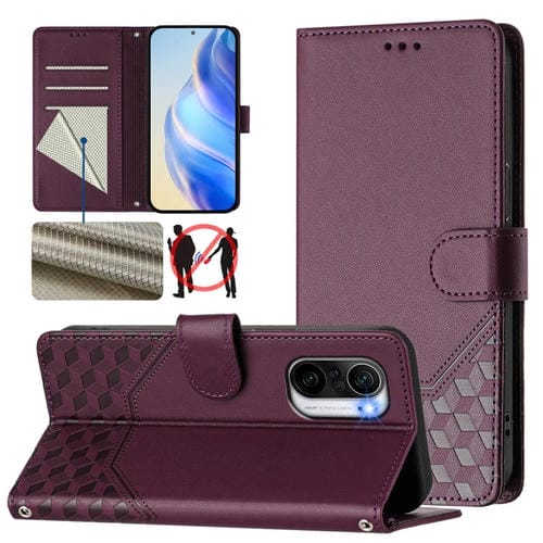 Funda de Cuero Rfid con Relieve En Panal para Redmi K40/K40 Pro (Violeta)