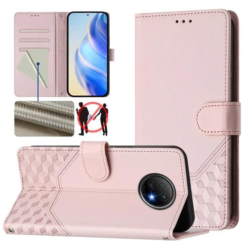 Funda de Cuero Rfid con Relieve En Panal para Redmi Note 9T (Rosa)