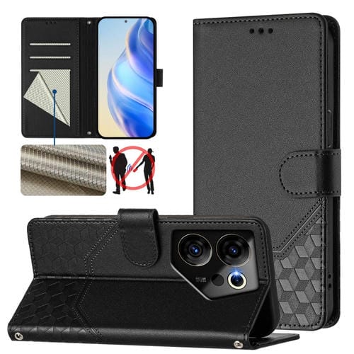 Funda de Cuero Rfid con Relieve en Panal para Tecno Camon 20 Premier 5G (Negra)