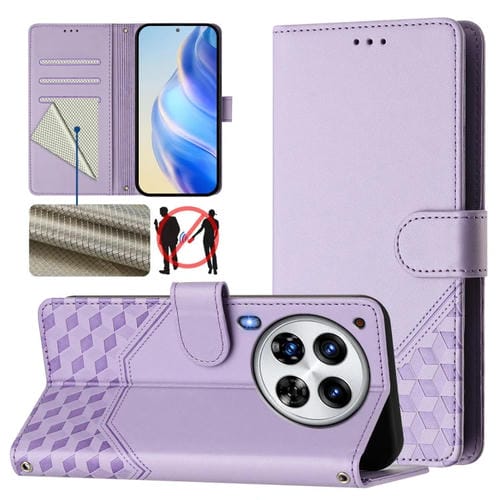 Funda de Cuero Rfid con Relieve en Panal para Tecno Camon 30 Premier 5G (Morado Claro)