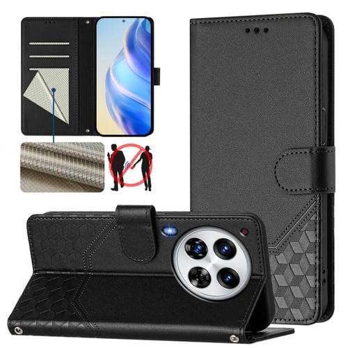 Funda de Cuero Rfid con Relieve en Panal para Tecno Camon 30 Premier 5G (Negra)
