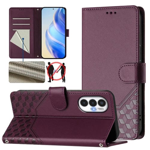 Funda de Cuero Rfid con Relieve en Panal para Tecno Pova 3 (Violeta)