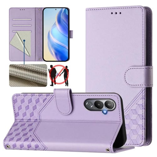 Funda de Cuero Rfid con Relieve en Panal para Tecno Pova 4 (Morado Claro)