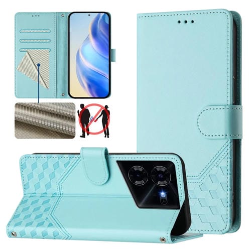 Funda de Cuero Rfid con Relieve en Panal para Tecno Pova 5 Pro 5G (Verde Menta)