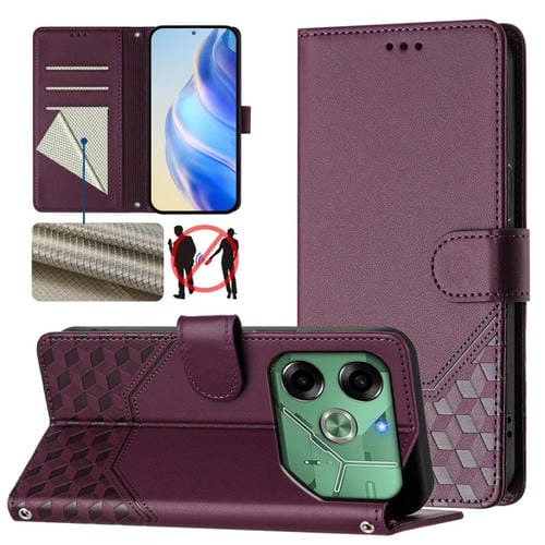 Funda de Cuero Rfid con Relieve en Panal para Tecno Pova 6 4G (Violeta)