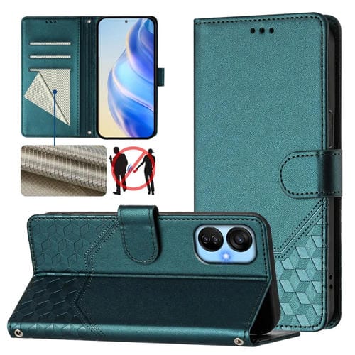Funda de Cuero Rfid con Relieve en Panal para Tecno Spark 9 Pro/Spark 9T (Verde Pavo Real)