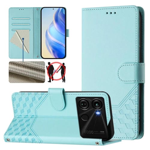 Funda de Cuero Rfid con Relieve en Panal para Teléfono Itel P40 (Verde Menta)