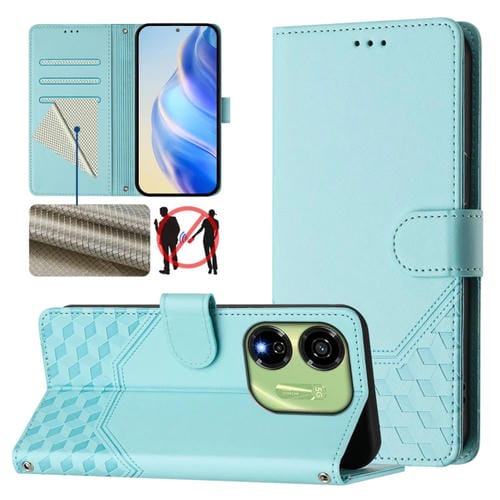Funda de Cuero Rfid con Relieve en Panal para Teléfono Itel P55 5G (Verde Menta)