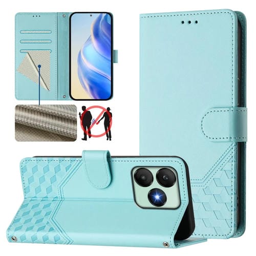 Funda de Cuero Rfid con Relieve en Panal para Teléfono Wiko T20 (Verde Menta)