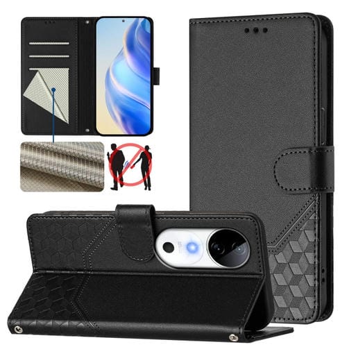Funda de Cuero Rfid con Relieve En Panal para Vivo S19 (Negra)