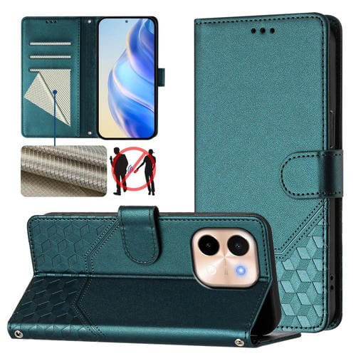 Funda de Cuero Rfid con Relieve En Panal para Vivo Y28 4G (Verde Pavo Real)