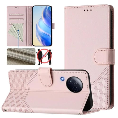 Funda de Cuero Rfid con Relieve En Panal para Xiaomi Civi 3 (Rosa)