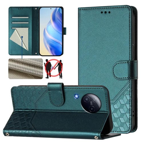 Funda de Cuero Rfid con Relieve En Panal para Xiaomi Civi 3 (Verde Pavo Real)