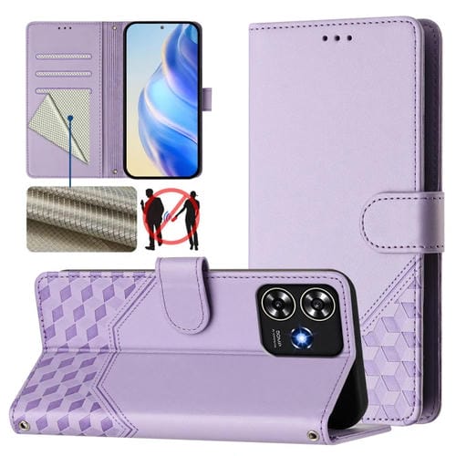 Funda de Cuero Rfid con Relieve en Panal para ZTE Blade A73 4G (Morado Claro)