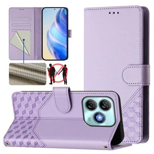 Funda de Cuero Rfid con Relieve en Panal para ZTE Blade A75 4G (Morado Claro)