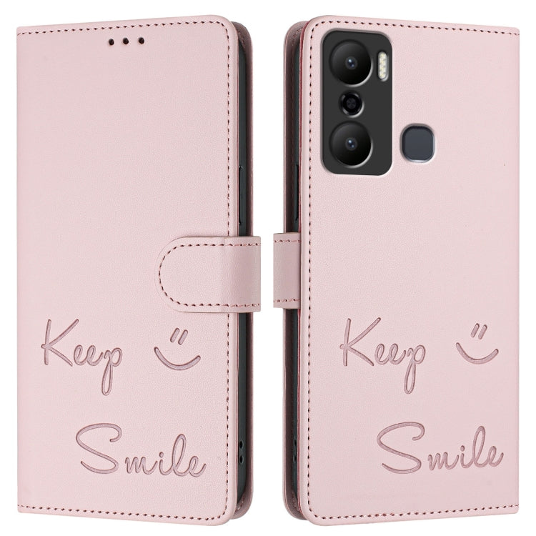 Funda de Cuero Rfid con Relieve Smile para Infinix Hot 20 Play (Rosa)