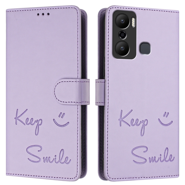 Funda de Cuero Rfid con Relieve Smile para Infinix Hot 20 Play (Morado Claro)
