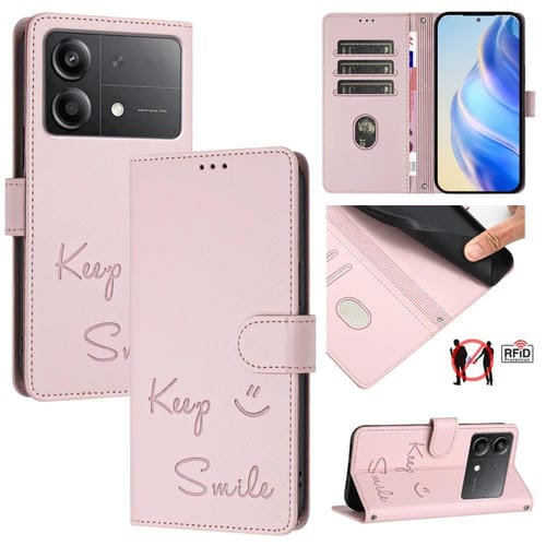 Funda de Cuero Rfid con Relieve Smile para Xiaomi Poco X6 Neo (Rosa)