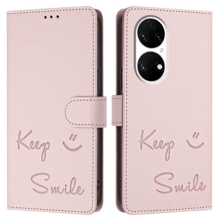 Funda de Cuero Rfid con Relieve Sonriente para Huawei Enjoy 50 Pro 4G (Rosa)