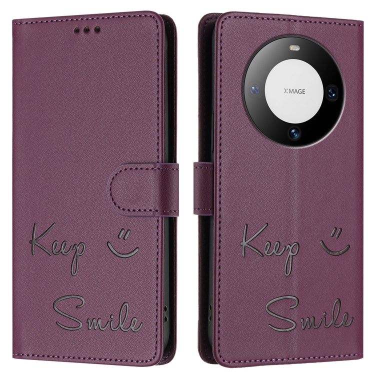 Funda de Cuero Rfid con Relieve Sonriente para Huawei Mate 60 Pro/60 Pro+ (Violeta)