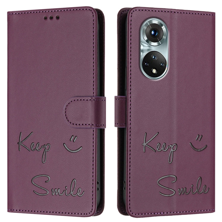 Funda de Cuero Rfid con Relieve Sonriente para Huawei Nova 9 (Violeta)
