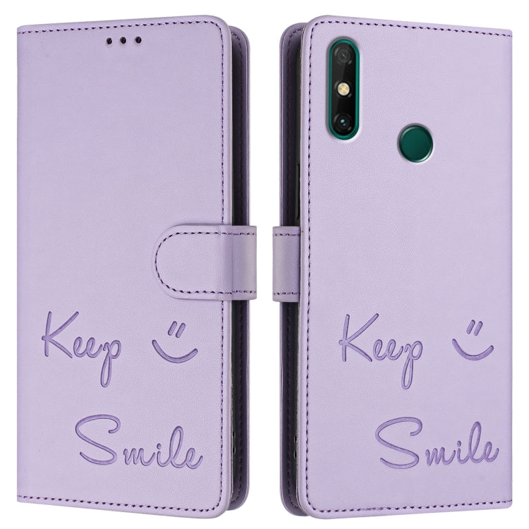 Funda de Cuero Rfid con Relieve Sonriente para Huawei P Smart 2021 4G (Morado Claro)