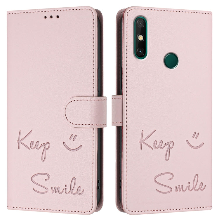 Funda de Cuero Rfid con Relieve Sonriente para Huawei P Smart 2021 4G (Rosa)
