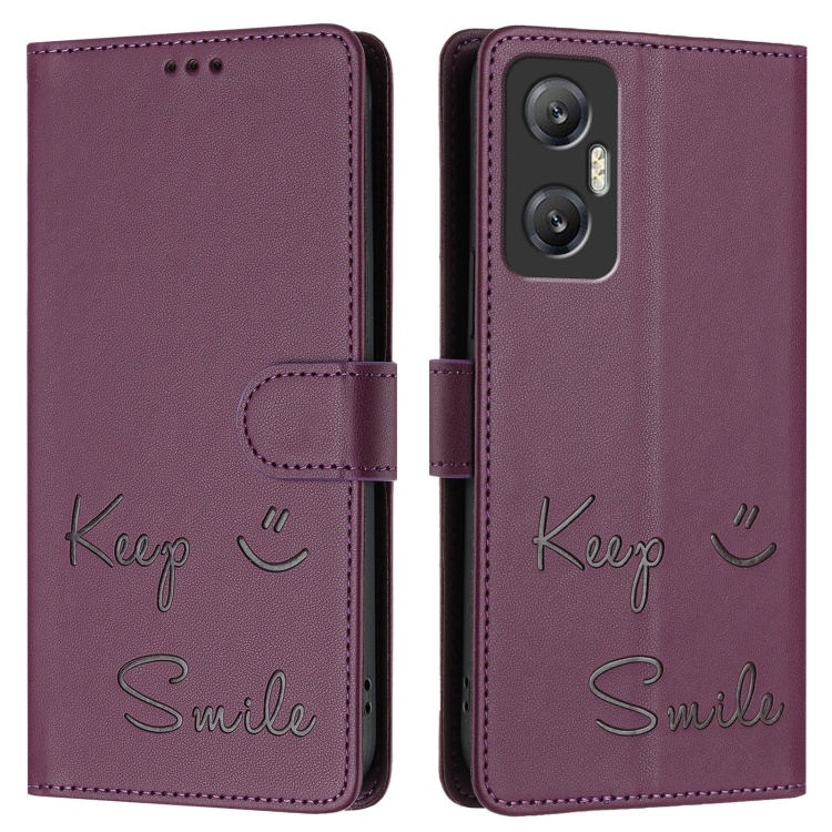 Funda de Cuero Rfid para Infinix Hot 20 5G X666/X66B con Relieve Sonriente (Violeta)