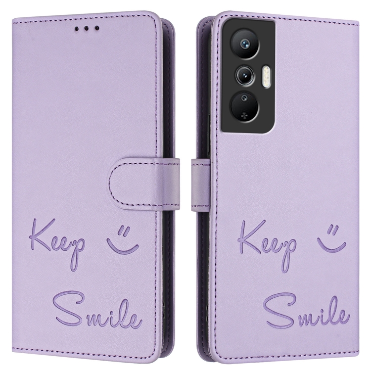 Funda de Cuero Rfid con Relieve Sonriente para Infinix Hot 20S y Hot 20 Pro (Morado Claro)