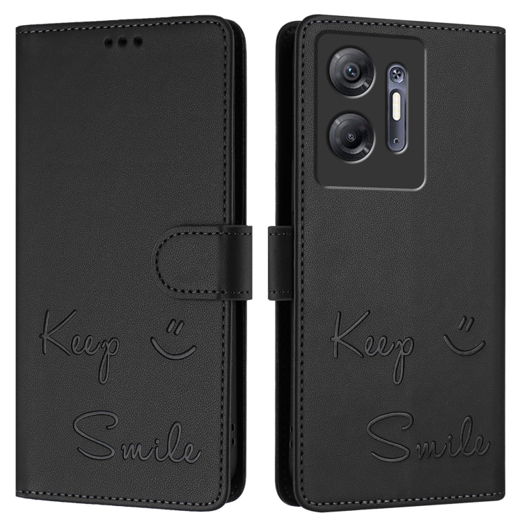 Funda de Cuero Rfid con Relieve Sonriente para Infinix Hot 30 5G (Negra)
