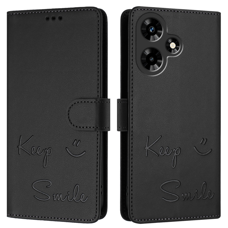 Funda de Cuero Rfid con Relieve Sonriente para Infinix Hot 30I (Negra)