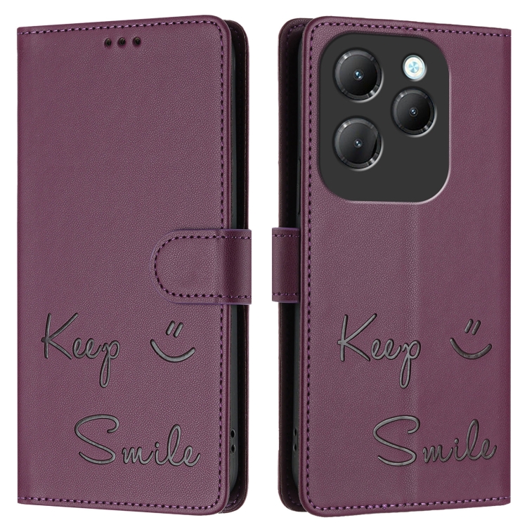 Funda de Cuero Rfid con Relieve Sonriente para Infinix Hot 40 y Hot 40 Pro (Violeta)